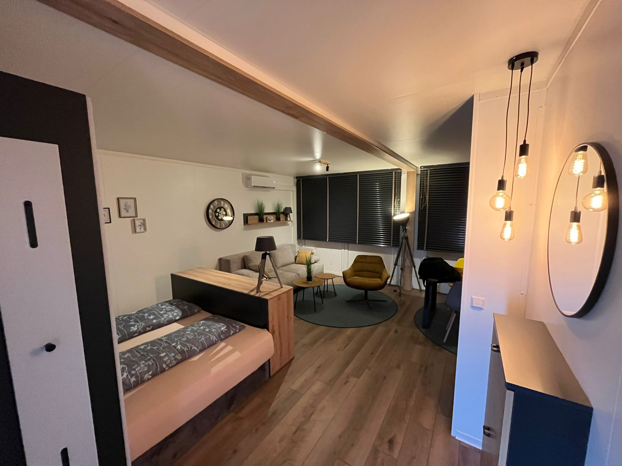In unserem Chalet Kunterbunt beinhalten die Appartements ein Doppelbett, eine Wohn-Schlafcouch mit Platz für zwei weitere Personen (idealerweise 2 Kinder oder 1 Erwachsener), eine kleine Kochzeile mit Essbereich, sowie einem Badezimmer mit Dusche/WC.