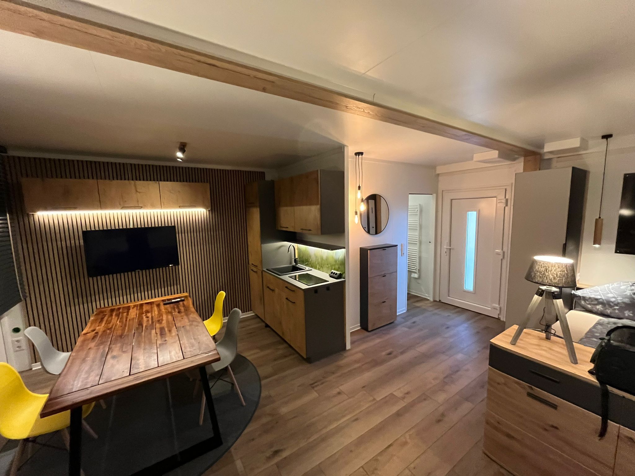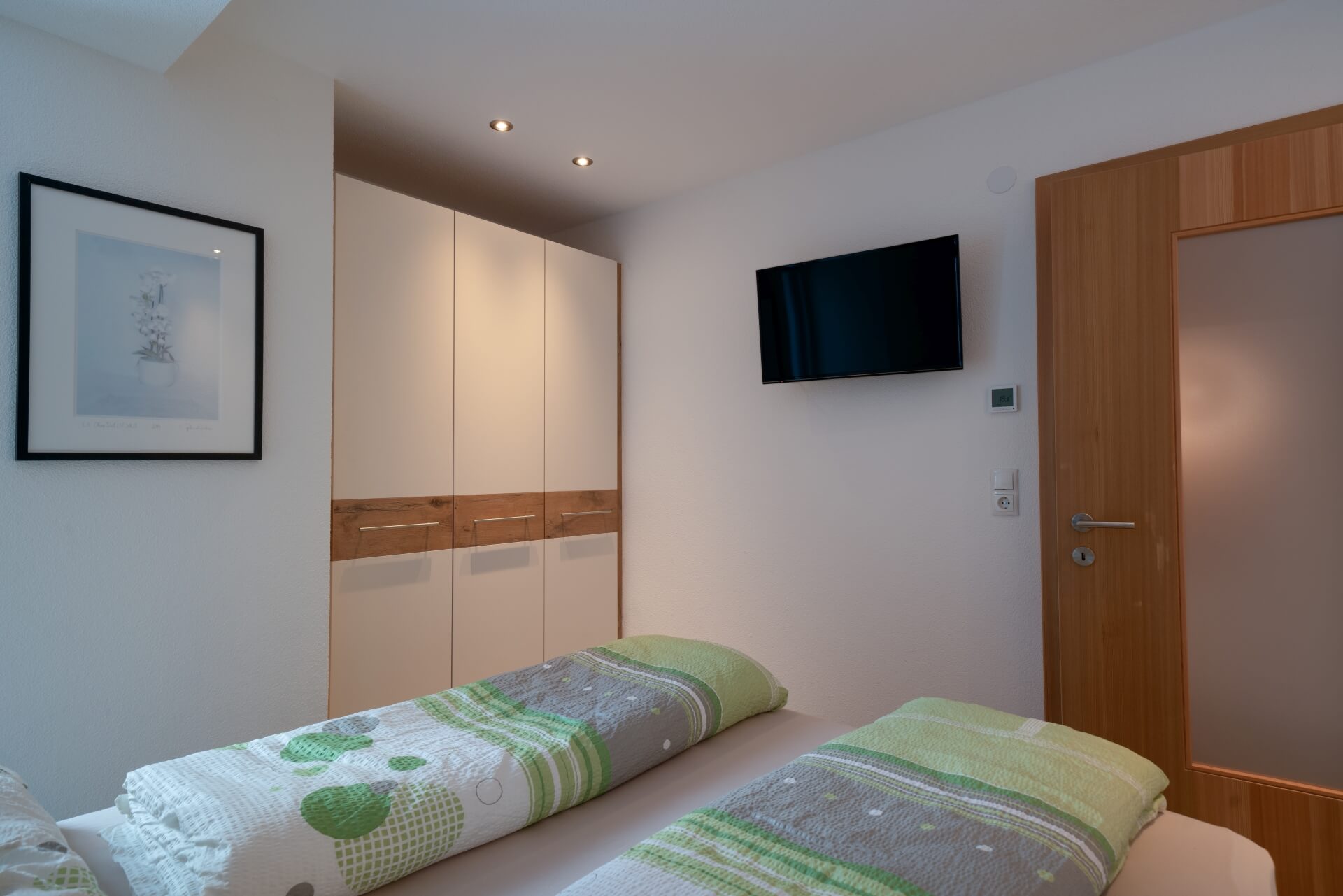 Das Appartement Familienglück verfügt über zwei getrennte Schlafzimmer. Außerdem finden Sie auch hier eine kleine Kochzeile, einen Essbereich sowie ein Badezimmer mit Dusche/WC.